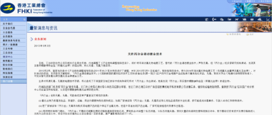 ● 本文《香港工業總會:丙爾金鍍金無毒無氰是誤導》來自合航集團官網,歡迎轉載.● 鏈接地址:http://www.grecc.com.cnhttp://www.grecc.com.cn/2016.html