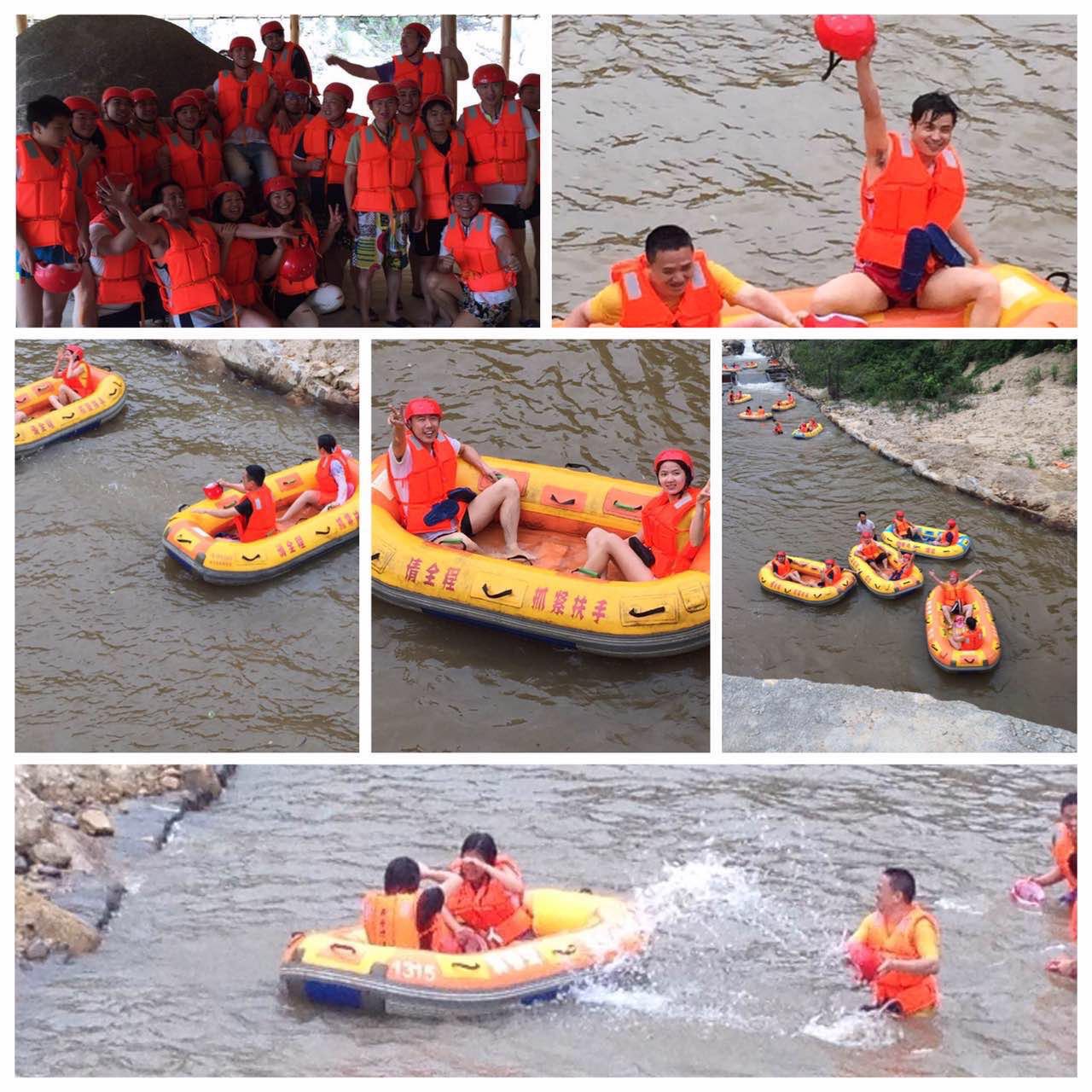 中午大家在一起享受了一番當?shù)孛朗持螅?qū)車來到了巽寮灣龍騰峽漂流,開始了我們的第二項挑戰(zhàn)。盡情享受漂流給心靈帶來歡愉與刺激的同時,享受大自然的鬼斧神工之妙!平時一向溫和的李總和林總,也童真了回,孩子氣地直接從漂流艇上跳入水中,和大伙一起玩起了潑水大戰(zhàn),更加拉進了彼此間的距離感。